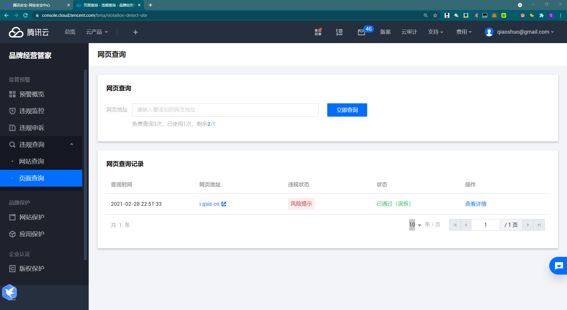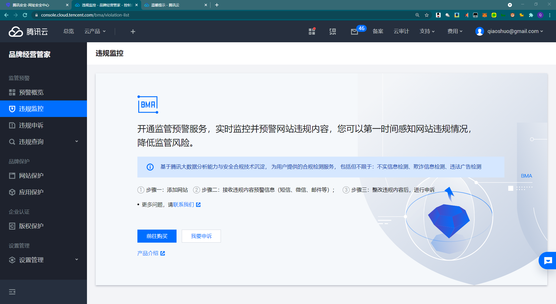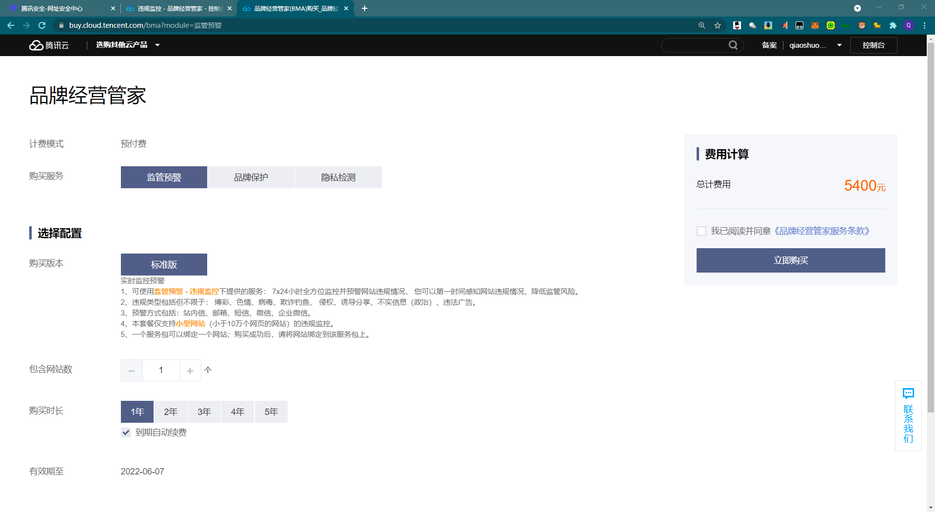 这个服务的销售“部门”不是腾讯云公司了,而是腾讯的安全管家 https://urlsec.qq.com/