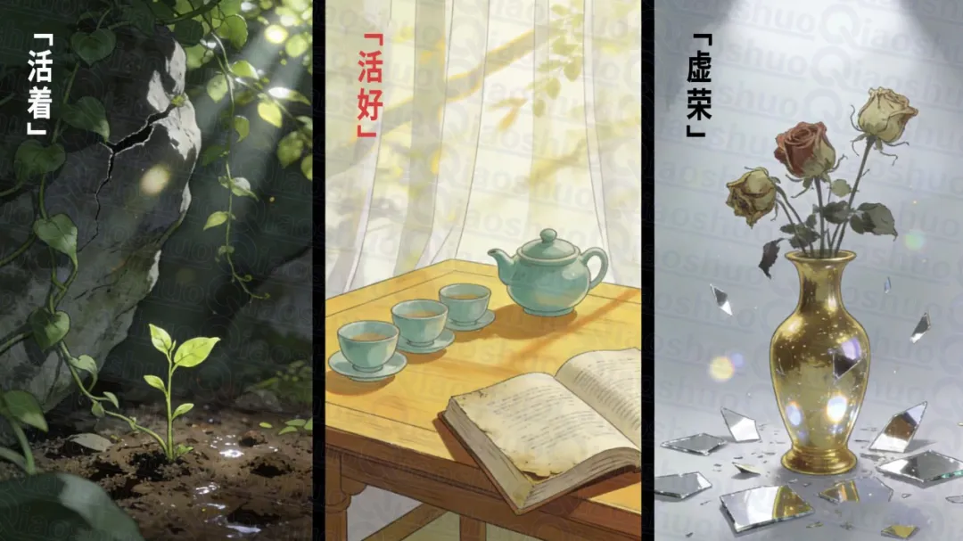“活着”是免费的,靠自然馈赠,是满足基本生存,有饭吃、有衣穿、有地方住,靠自然与基础保障就能实现,几乎不用额外成本。“活好”是有成本的,是有品质、有底气、有选择的生活,需要付出努力与成本,靠奋斗争取。“装体面”则是超出自身能力的、只为面子与攀比,靠虚荣支撑。